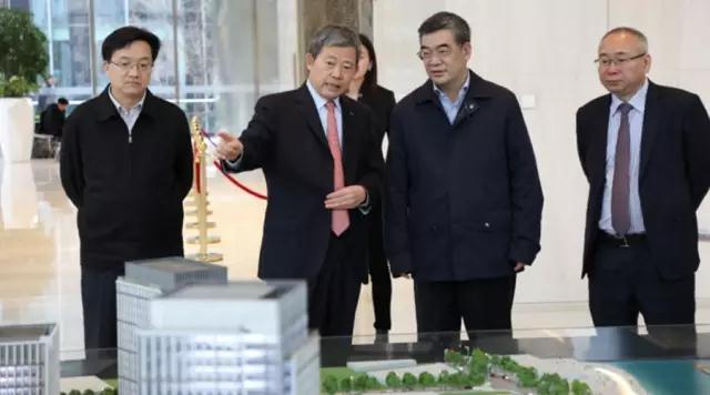 朱鹤新副省长在李怀珍总裁陪同下参观董家渡金融城项目模型