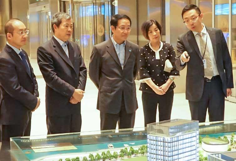 贾宝军董事长一行还参观了中民投所投资的董家渡金融城项目沙盘,并详细了解了董家渡金融城的规划设计和建设情况。